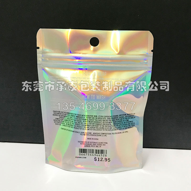 2018年,世界著名內(nèi)衣品牌“維多利亞的秘密”通過授權(quán)國內(nèi)代理公司的方式聯(lián)系到了承泰包裝,訂做了一批具有鐳射效果的站立陰陽拉鏈袋,該袋子由鐳射膜材質(zhì)制作,在光線照射下呈現(xiàn)五顏六色的鐳射效果,背面鍍鋁,正面透明,包裝產(chǎn)品后產(chǎn)生了極具誘惑力的視覺感官,并讓消費者產(chǎn)生強烈的購買欲望。