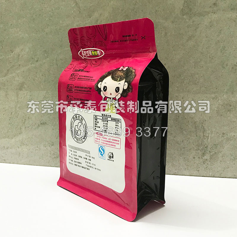 干果、巴旦木、夏威夷果包裝,復(fù)合鍍鋁材質(zhì),八邊封方底造型,頂部拉鏈可多次開合,適用于干果,咖啡豆、于茶葉、食品等。