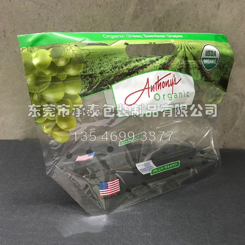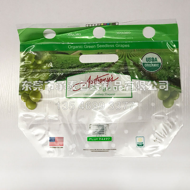 復合葡萄手提拉鏈袋,采用食品級OPP及CPP材質(zhì),成本低廉,強度好;袋身打孔透氣保鮮,防霧;可直接入冰庫冷藏,用戶更可直接水沖洗無需額外容器。