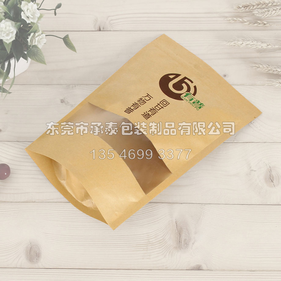 紙塑復(fù)合牛皮紙茶葉袋,牛皮紙表面復(fù)合啞光膜,內(nèi)部PE,密封防潮,袋身開透明窗。適用于茶葉、干果、零食等包裝。