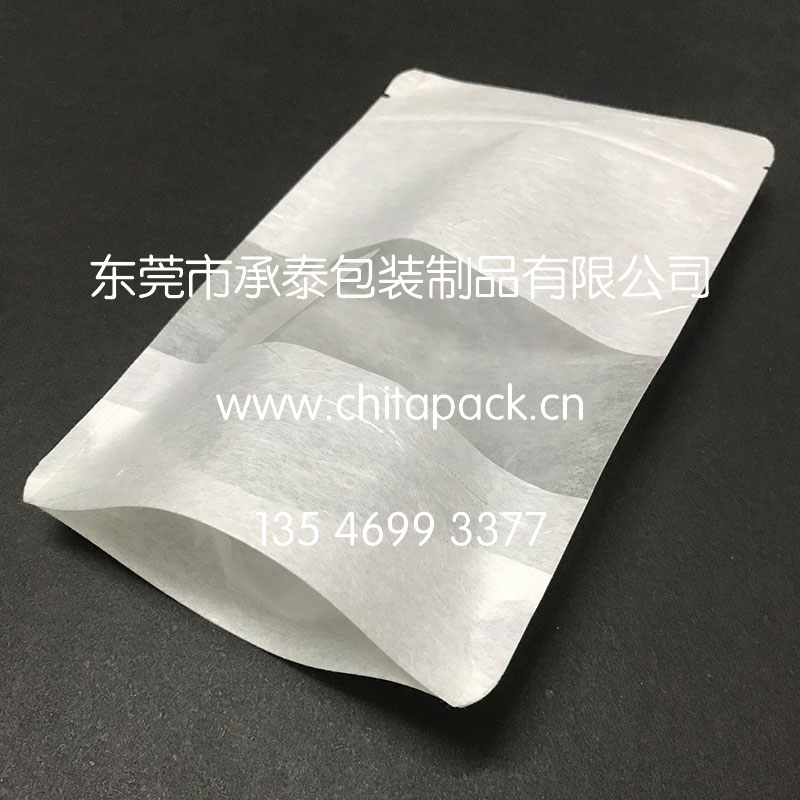 通用食品包裝,可采用牛皮紙、綿紙、云龍紙等紙品與內(nèi)層塑料復(fù)合成袋,紙品質(zhì)感與塑料密閉功能相結(jié)合。袋身開窗可檢視內(nèi)部,頂部密封拉鏈可多次開合,底部展開可使袋身站立,常用于食品、茶葉等產(chǎn)品包裝。