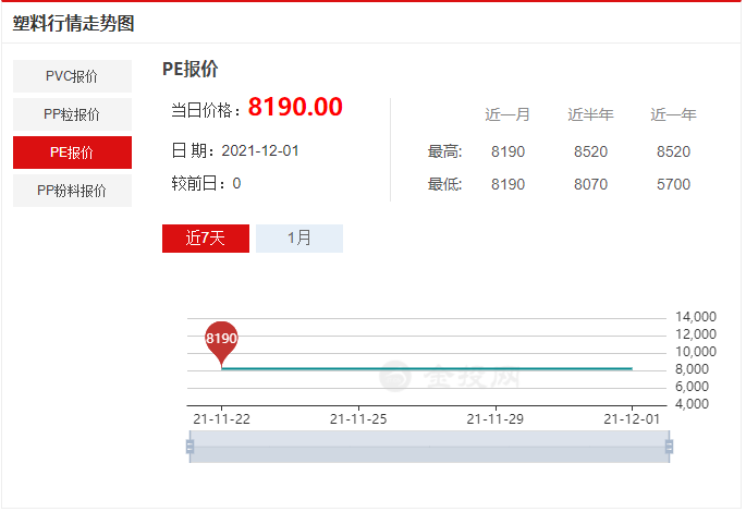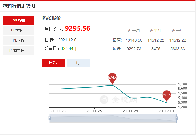 12月1日PP現(xiàn)貨價格偏弱整理,幅度在50-100元/噸,預(yù)計下周一國內(nèi)聚丙烯市場弱勢,以華東為例,預(yù)計拉絲主流價格在8200-8550元/噸。12月1日國內(nèi)PVC市場價格下跌,預(yù)計下周PVC市場價格偏弱震蕩為主,下周華東SG-5價格預(yù)計或?qū)?900-9300元/噸區(qū)間震蕩。